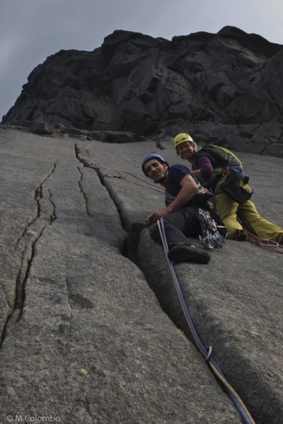 Se state andando alle Lofoten siete sicuramente alla ricerca di vie non attrezzate, o trad come va di moda dire oggi. Avevamo dietro una serie completa di friends (noi non avevamo solo il 6BD) raddoppiando le misure medie, serie completa di nuts, cordini, 6-7 rinvii ed inoltre avevamo dietro anche degli eccentrici. Fate conto che dovete attrezzare due soste ed un tiro, quindi regolatevi di conseguenza.
