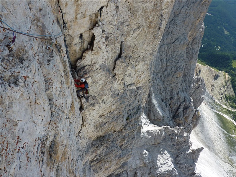 via grandiosa, ma non divertente. Si scala spesso su roccia friabile, con chiodi datati, e con zone improteggibili.